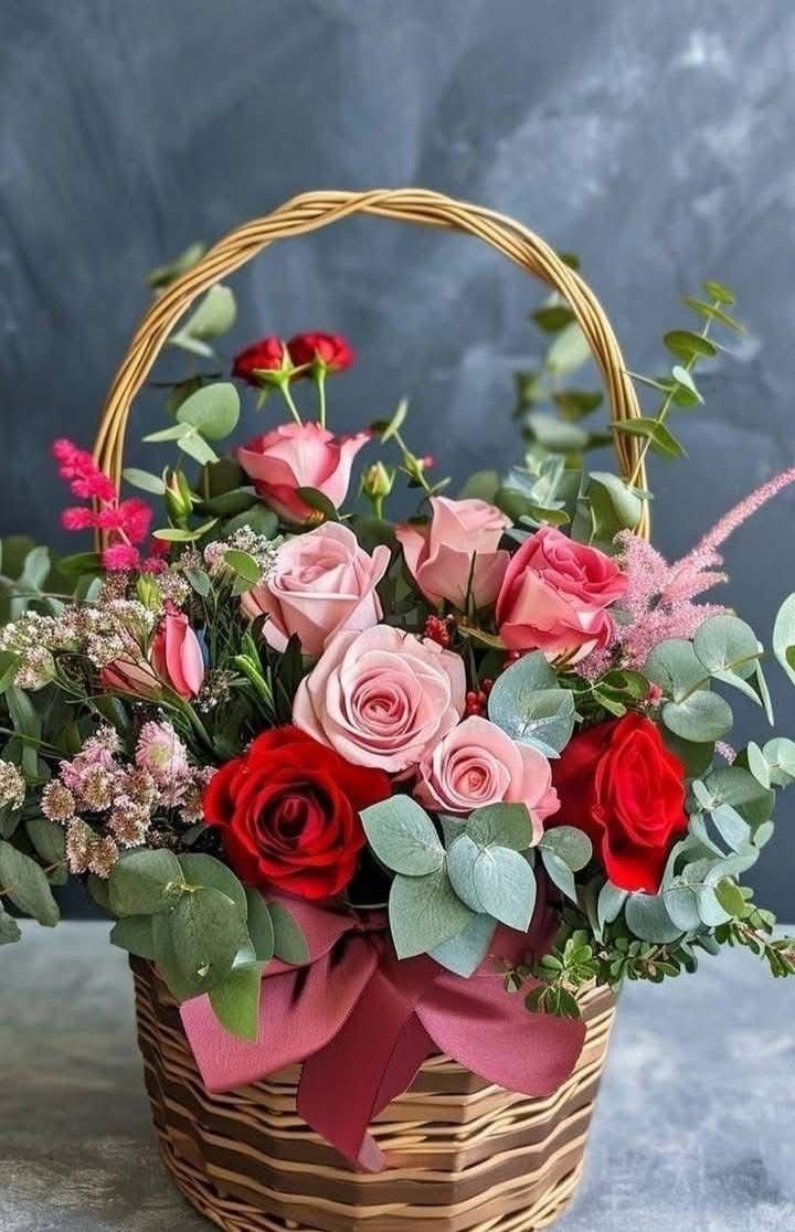 “Pasión en Rosa” combina rosas rojas profundas con tonos rosados suaves, creando un juego de emociones que transmite amor, admiración y dulzura. El eucalipto y las flores complementarias aportan frescura y textura, mientras la canasta clásica y el lazo decorativo realzan su presentación con un toque refinado.