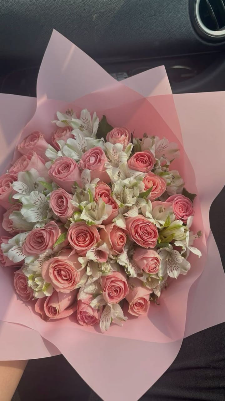 “Rosa Infinita” reúne una abundante selección de rosas rosadas acompañadas de delicadas alstroemerias blancas que aportan luz y textura. La armonía entre cada flor crea una composición elegante, romántica y profundamente femenina.